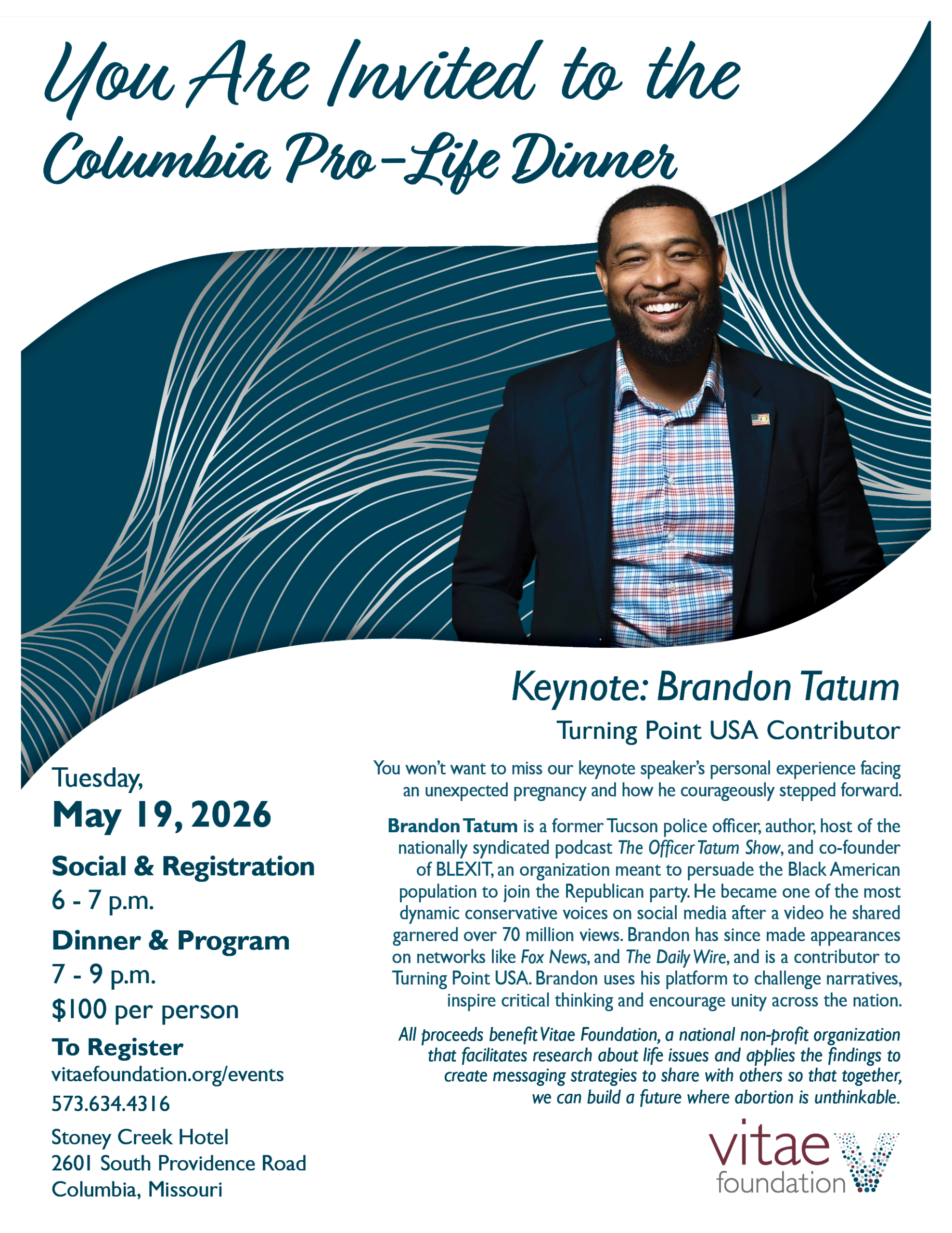 Event flyer is here and sponsorship form is here. For more event information, contact Jenn Hammann at events@vitaefoundation.org or 573.634.4316 ext. 224. For more sponsorship information, contact Stacey Kromer at stacey.kromer@vitaefoundation.org.