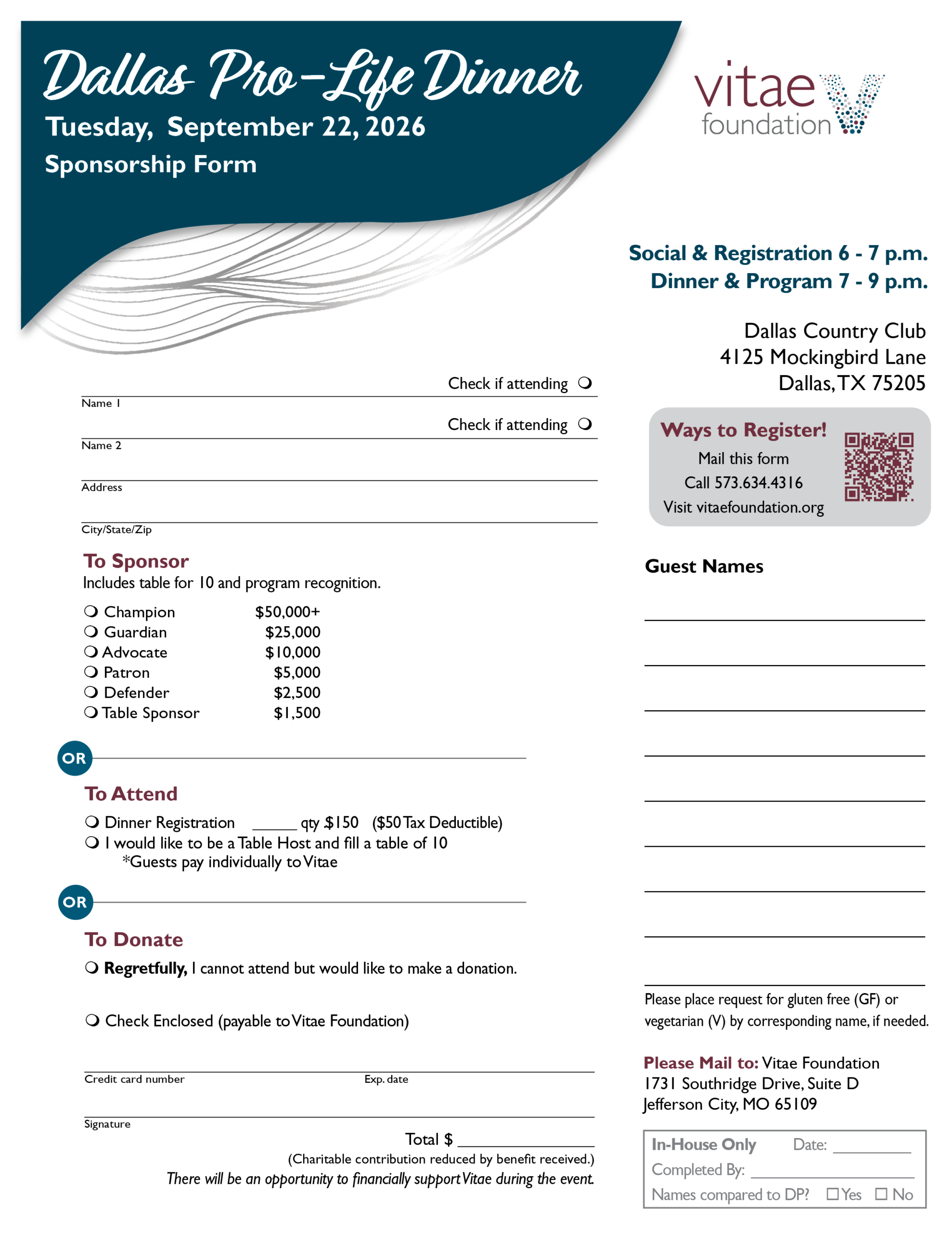 For more information, contact Jenn Hammann at events@vitaefoundation.org or 573.634.4316 ext. 224. For sponsorship information, contact Stacey Kromer at stacey.kromer@vitaefoundation.org or 573.634.4316 ext. 212.